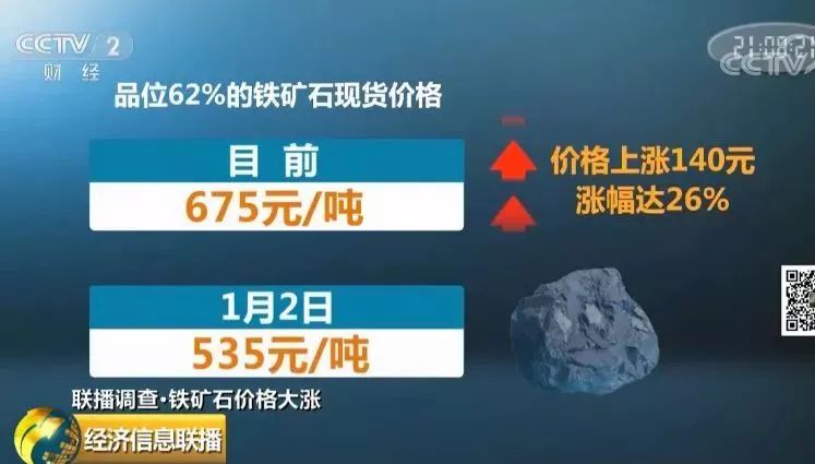 数据显示,品位62%的铁矿石现货价格目前在每吨675元,而1月2日的现货价格在每吨535元,三个多月的时间,价格上涨了140元,涨幅达到26%,创近两年新高。